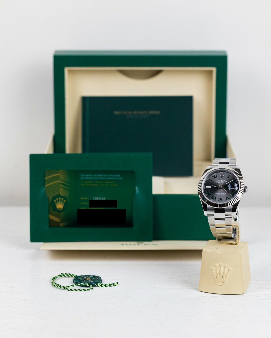 This 41mm stainless steel case houses the slate grey 'Wimbledon' dial with distinctive green Roman numerals, Chromalight hands & baton at 9.