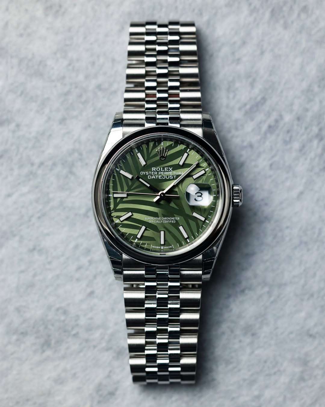 Rolex Datejust 36 Stainless Steel Olive Green Palm-Motif Dial Women's Watch M126200-0019