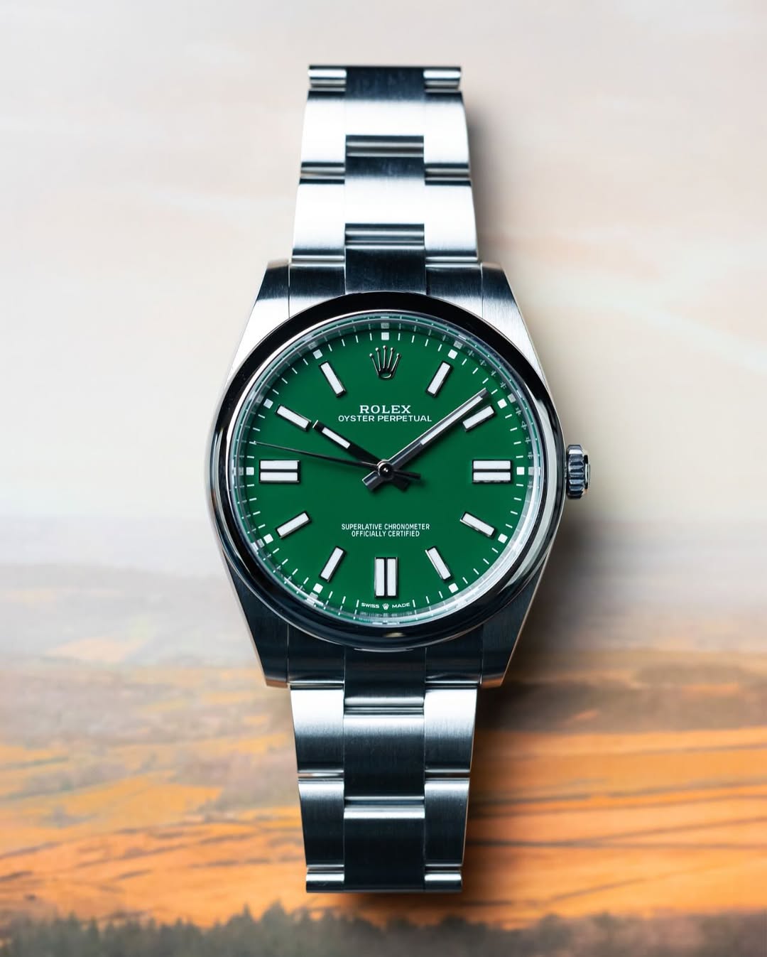 【Super Clone】RLX Oyster Perpetual 41mm 124300-0005 Green Index Dial & Smooth Bezel Oyster Bracelet Men’s Watch