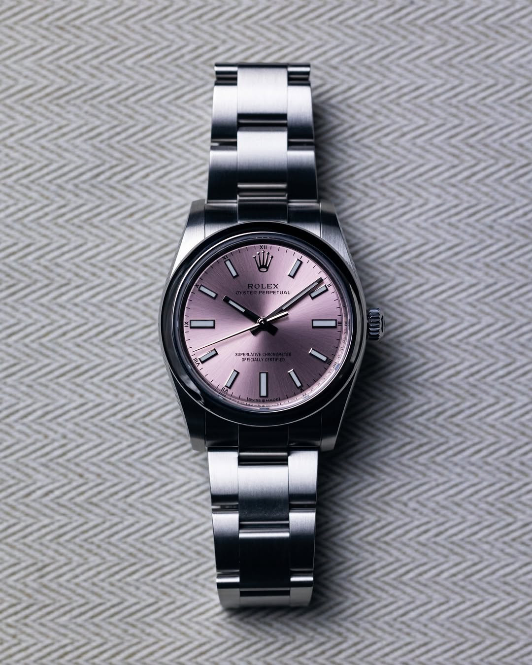【Super Clone】RLX Oyster Perpetual 34mm 124200-0009 Pink Dial Oyster Stainless Steel Bracelet Watch